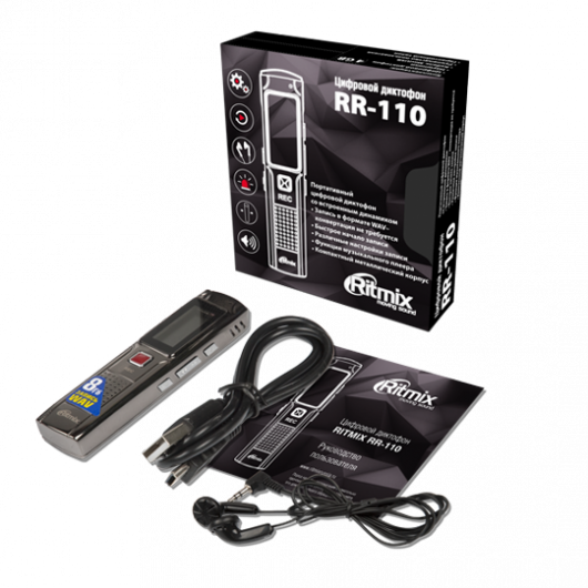 Ritmix RR-110 – это цифровой диктофон в компактном металлическом корпусе с функцией музыкального плеера.