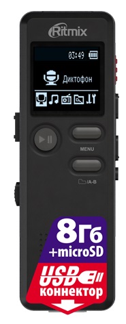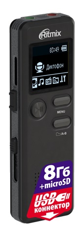 Ritmix RR-610 – это цифровой диктофон в сверхкомпактном узком корпусе с функцией музыкального плеера и FM-приёмника.