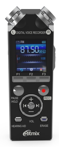 Ritmix RR-989 - это цифровой диктофон с цветным ЖК-дисплеем и функцией музыкального плеера. Модель оснащена двумя встроенными высокочувствительными микрофонами, расположенными под углом 90 градусов для записи естественного стереозвука. Поддерживает различные настройки качества и режимов записи также имеет функцию слухового аппарата и FM-радио.