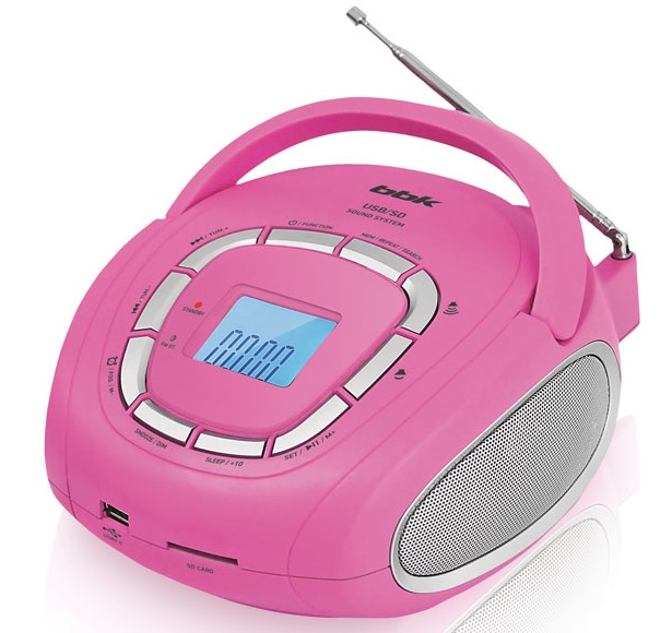 Бумбокс BBK BS05 розовый/серебро MP3,FM,USB,SD