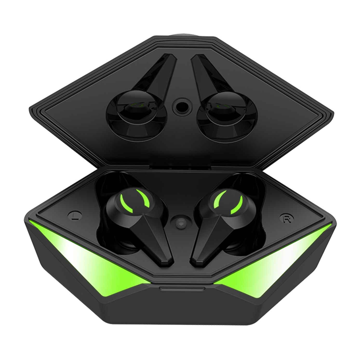 Эта гарнитура с подсветкой отлично подходит для гейминга, благодаря низкой задержке, всего 50-60 мс. Наушники – вкладыши надёжно фиксируются в ушной раковине, подключаются к смартфону или другому девайсу по Bluetooth 5.1. Радиус действия сигнала 10 метров. Чёткость звука обеспечивают динамики 13 мм, 32 Ом, чувствительностью 112 дБ. Ёмкость аккумуляторов в каждом наушнике 35 мАч, время работы 4.5 часа.