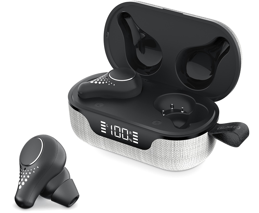 Емкость аккумулятора каждого наушника TWE-07 — 35 мАч, чего хватает на четыре часа непрерывной работы или сто двадцать часов в режиме ожидания. Когда наушники потребуют зарядки, положите их в специальный комплектный кейс. Футляр-аккумулятор — не только полезный аксессуар, но и стильная вещь, отделанная тканью и оснащенная LED-дисплеем, на котором отображается процент заряда.