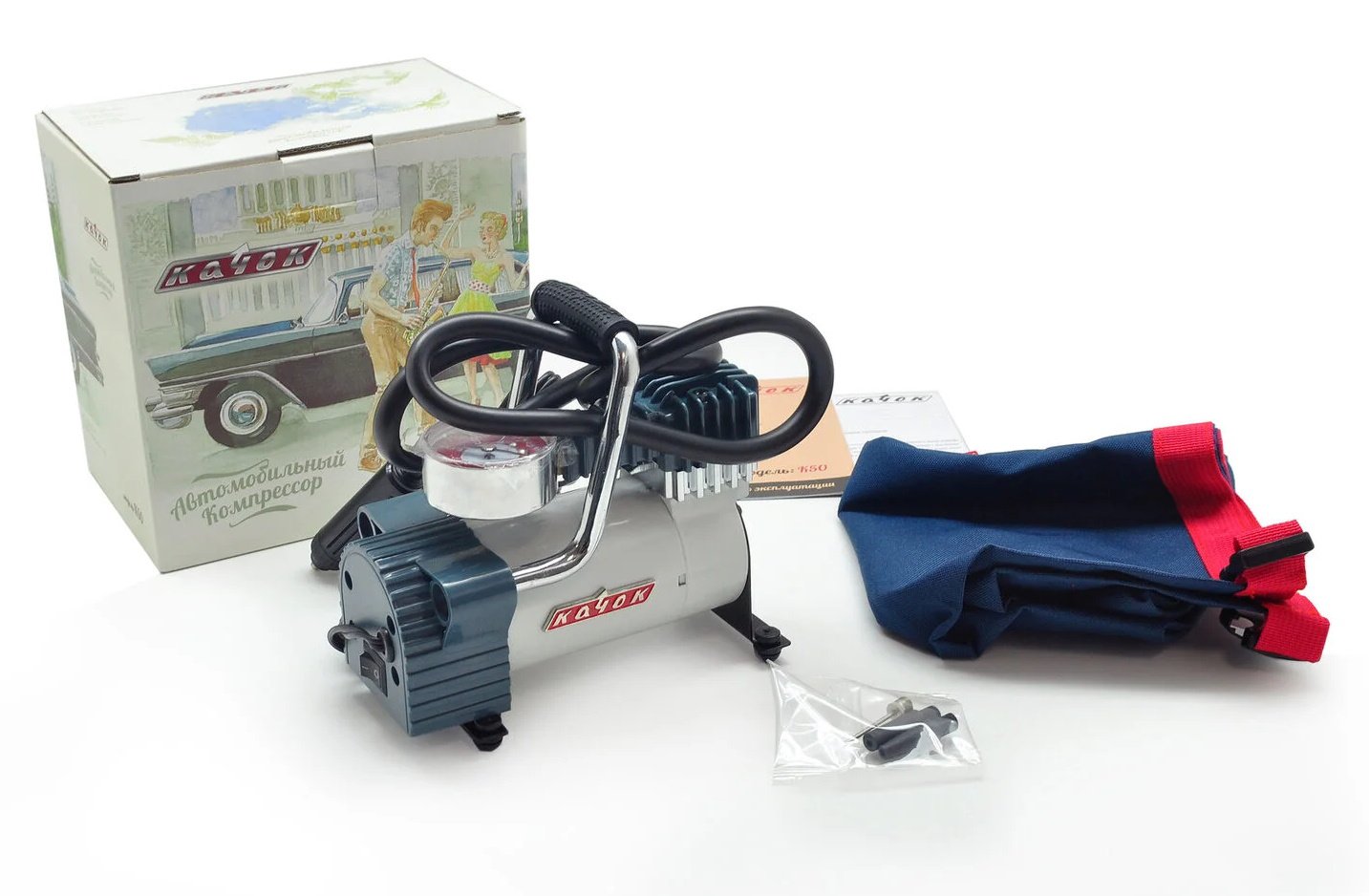 Комплектация Компрессор Качок К 50 Переносная сумка для хранения Набор переходных штуцеров - 4 штуки Инструкция по эксплуатации Упаковочная коробка