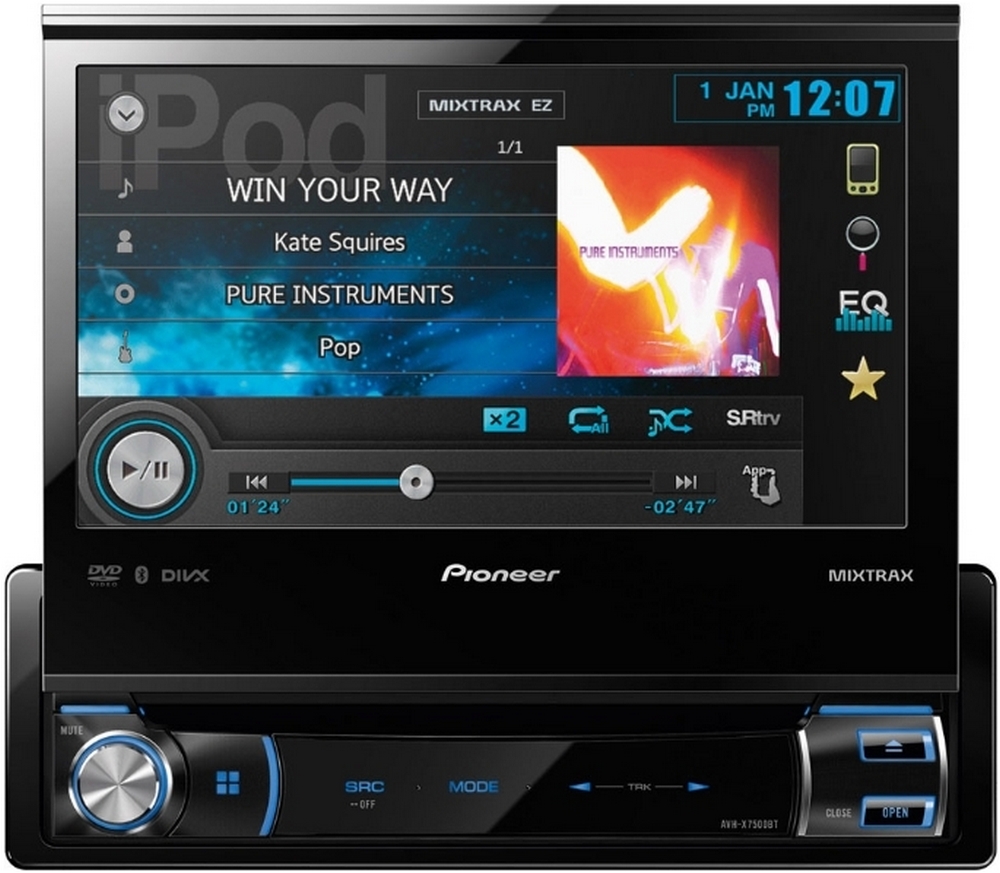 Автомагнитола Pioneer AVH-X7500BT 1-DIN DVD - мультимедийная система, имеет красивый моторизованный 7 " WVGA сенсорный дисплей, собственную технологию Pioneer в MIXTRAX ™ , встроенный в Bluetooth® для громкой связи и потокового аудио и режим AppRadio для iPhone® .