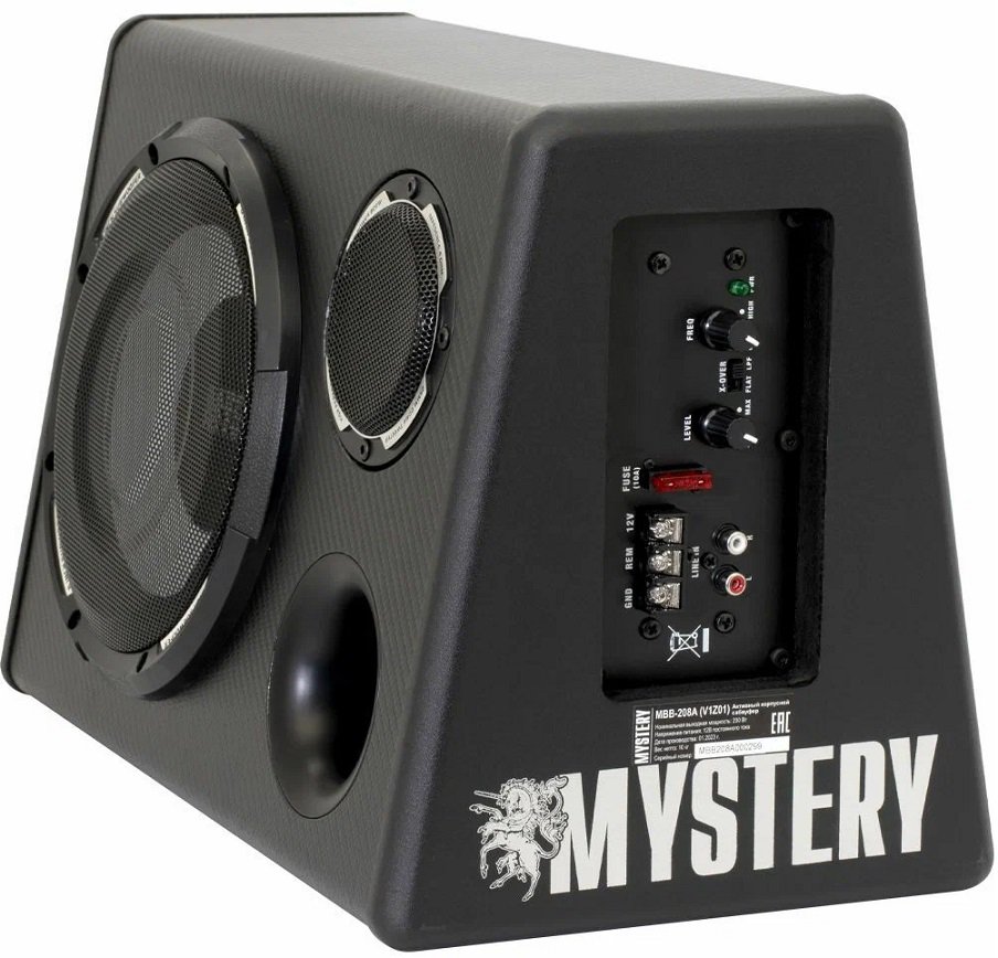 Сабвуфер Mystery MBB-208А 8"(20 см), активный,200 Вт, МДФ,фазоинвентор