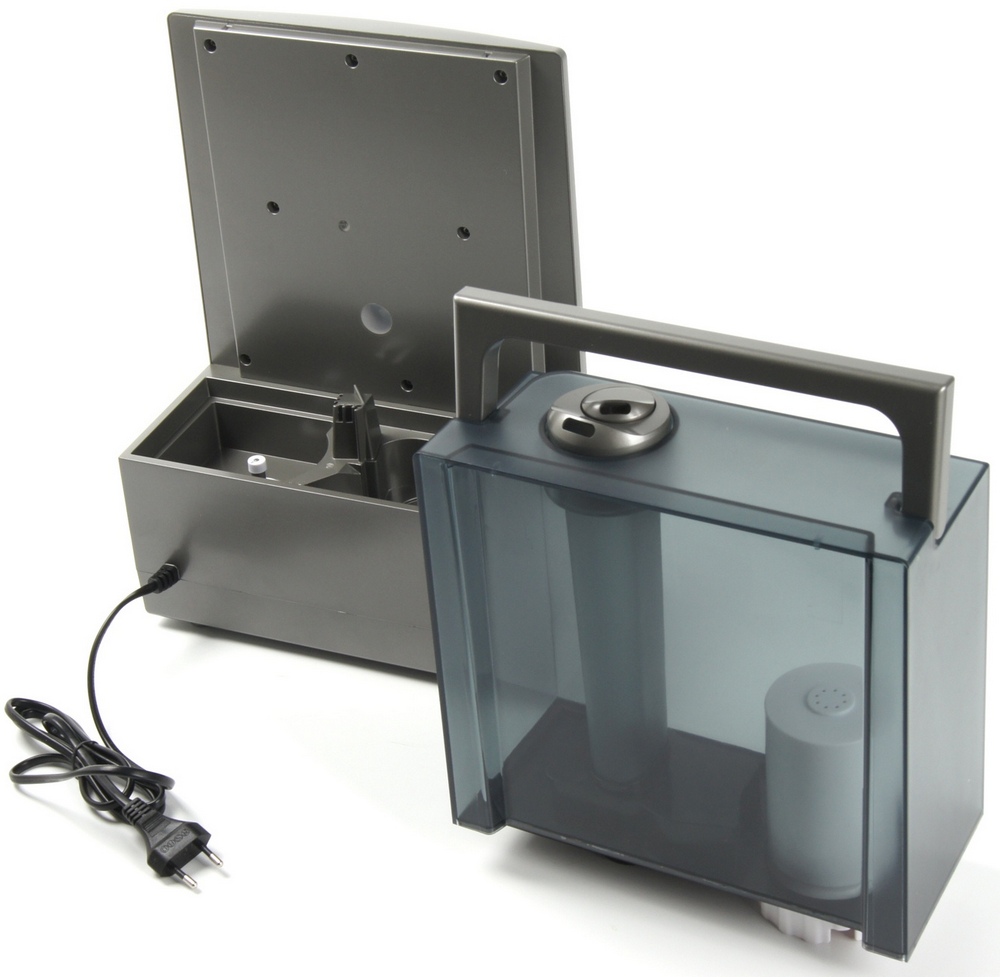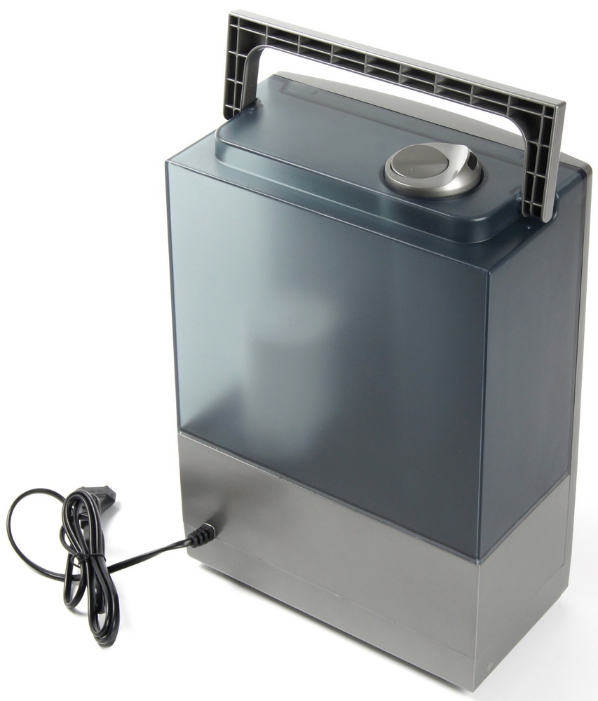 Увлажнитель порадует вас своей практичностью и функциональностью. Принцип его действия заключается в следующем: вода из специальной емкости для воды подается на вибрирующую с ультразвуковой частотой пластину, где вода разбивается в мелкодисперсную водяную взвесь. Поток воздуха, создаваемый вентилятором, подает ее в помещение, где она переходит в парообразное состояние. Выпускаемые пары внешне очень похожи на туман.