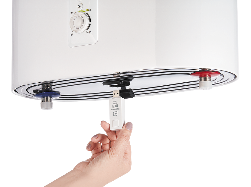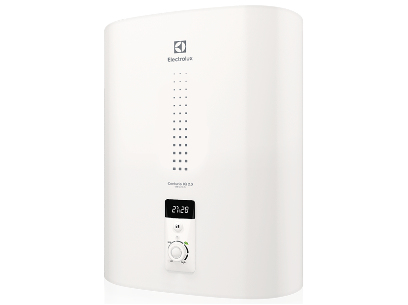 Electrolux серии EWH Centurio IQ 2.0 электрический накопительный водонагреватель с внутренним баком из нержавеющей стали и USB-разъемом для возможности управления прибором по сети Wi-Fi.