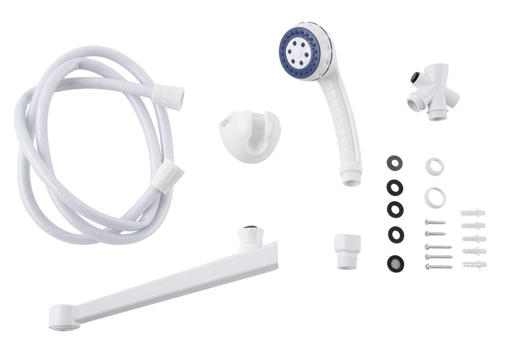 Расширенная комплектация: вместе с водонагревателем в комплекте идёт полный набор душевых аксессуаров: лейка, шланг, держатель и кран;