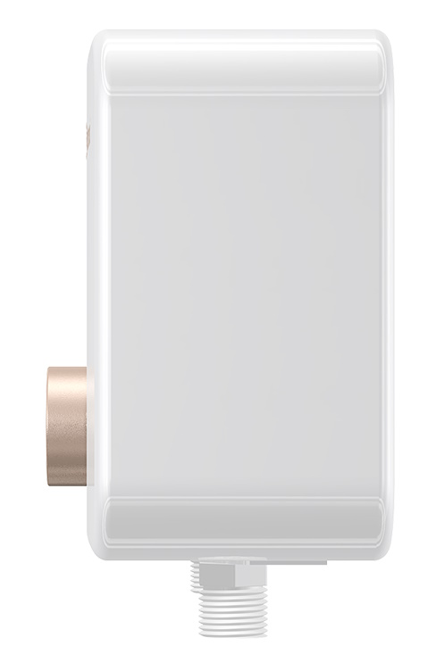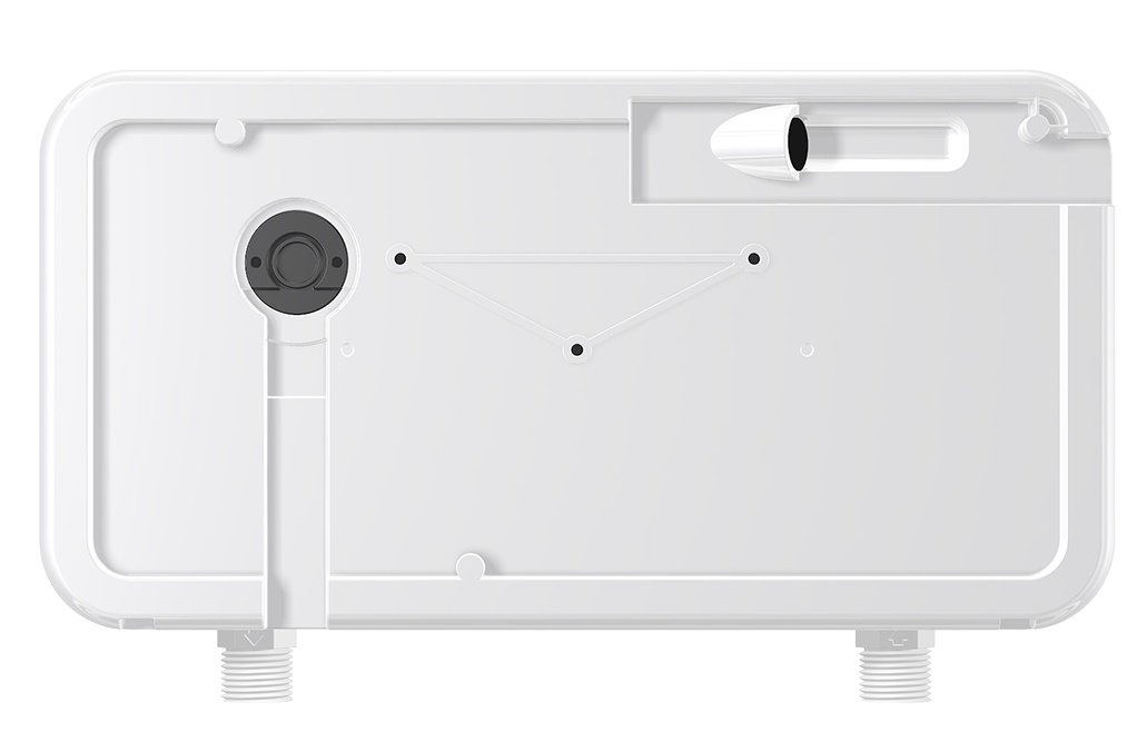 Компактный настенный водонагреватель проточного типа с медным нагревательным элементом, механическим управлением, нижней подводкой воды и двумя насадками:краном и душевой насадкой.