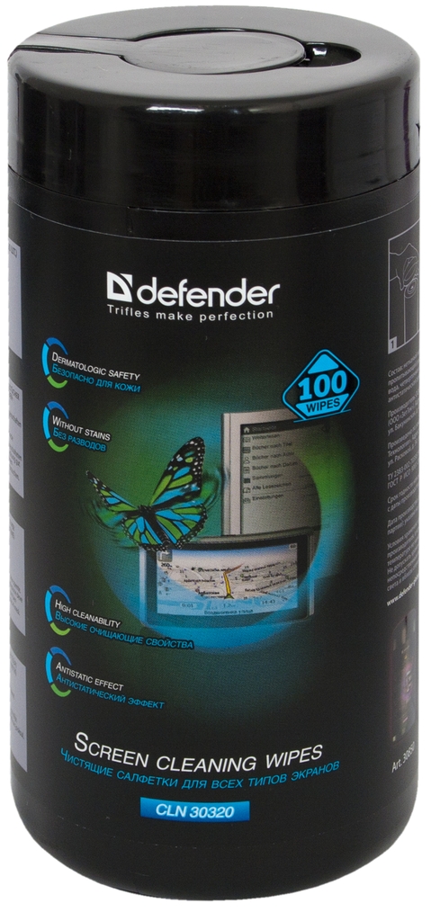 Салфетки влажные для экранов DEFENDER CLN 30320 для мониторов в тубе 100шт.