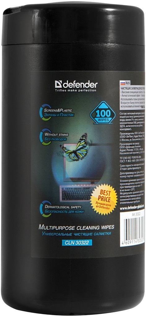 Салфетки влажные для экранов DEFENDER CLN 30322 универсальные в тубе 100шт.