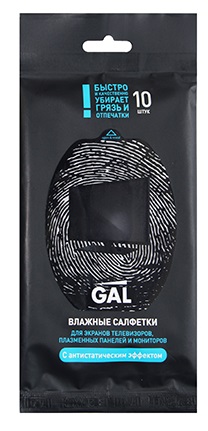 Салфетки влажные GAL №10 для экранов / в упаковке 10шт / с антист. эффектом