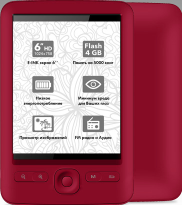 Электронная книга BQ-R002 Poem Dark Red 6"/1024x758/int4Gb/FM радио/MP3