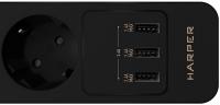Сетевой фильтр с USB зарядкой HARPER UCH-530 Black 3xUSB порта, 5 розеток, длина 1.5м, 4000W (16A)