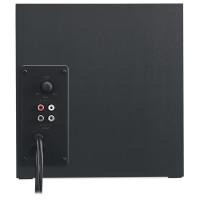 В состав системы входят две активные колонки и мощный активный сабвуфер с пластиковым корпусом и собственным регулятором громкости. Диффузор, диаметр которого составляет 133 мм, с максимальной точностью и реалистичностью воспроизводит низкие частоты.