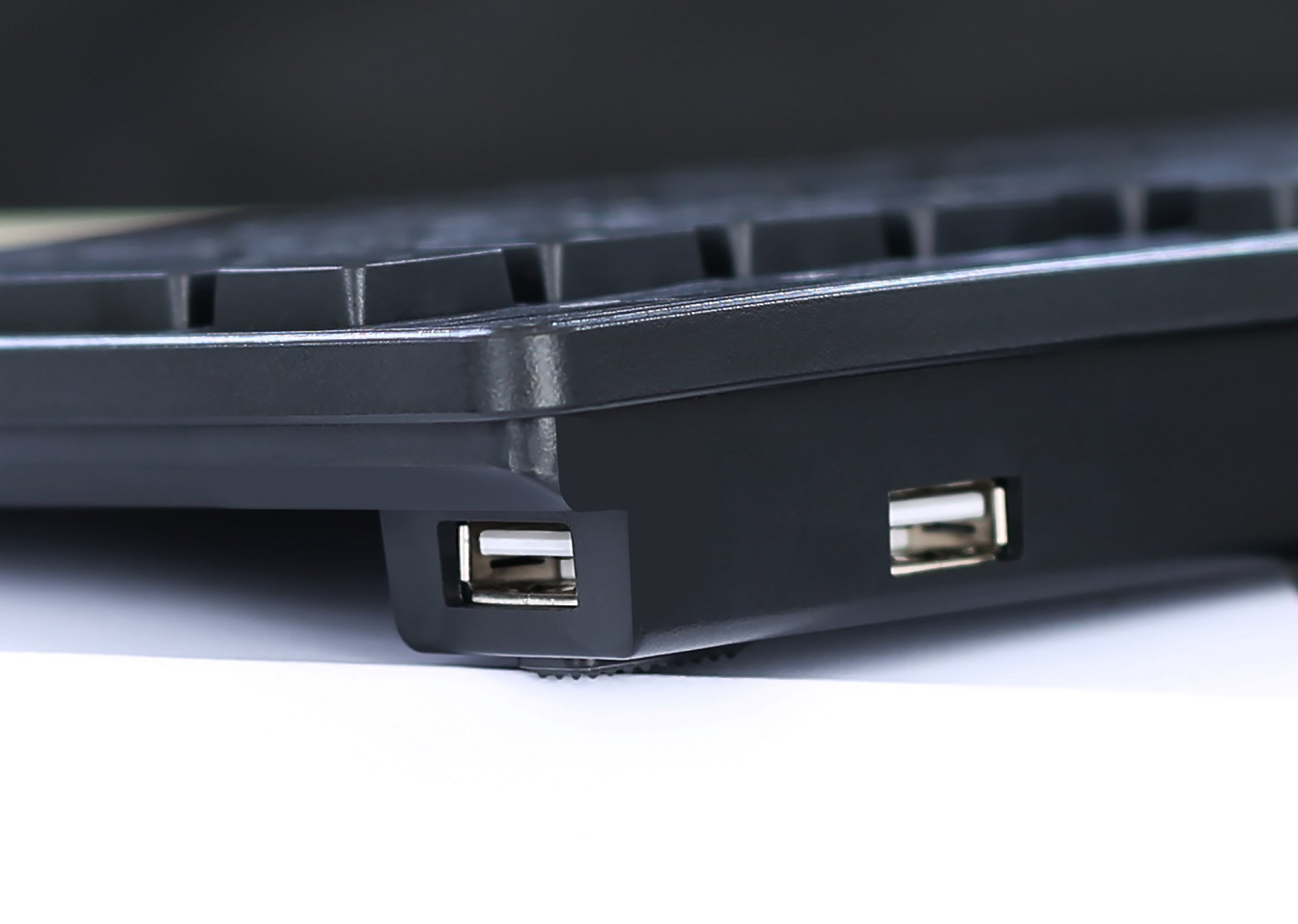 Проводная клавиатура в ультратонком корпусе с двумя USB-разъемами, пройденным тестом на 10 миллионов нажатий и 12-ю "горячими" клавишами.