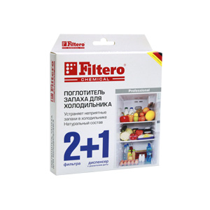 Быстро и надежно устраняет неприятные запахи в холодильнике. Содержит активированный уголь и крахмаловую пропитку. Полностью поглощает даже резкие запахи чеснока, лука, сыра и рыбы. Не имеет собственного запаха. В комплекте 2 фильтра и диспенсер с возможностью установки даты. Фильтр рассчитан на использование в течение около 2-х месяцев. После этого срока необходимо заменить фильтр в диспенсере.