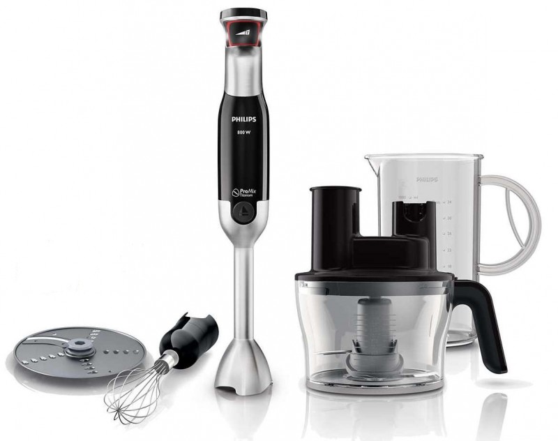 Ручной блендер Philips с мощным мотором 800 Вт оснащен технологией смешивания Promix и кнопкой SpeedTouch для интуитивного управления: достаточно просто нажать на нее, чтобы увеличить мощность обработки. С этим блендером легко достичь желаемого результата при приготовлении любимых блюд. Philips HR 1677/90 измельчает быстро и легко, благодаря ножам из нержавеющей стали. Эргономичная ручка блендера обеспечивает удобство работы, а наличие насадки-измельчителя и насадки для взбивания делает прибор универсальным помощником на вашей кухне.