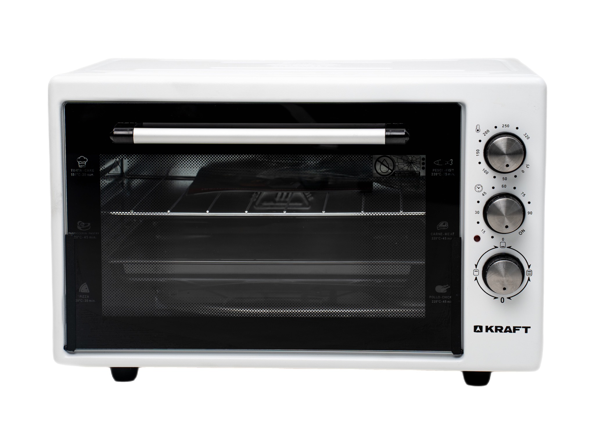 Электрическая духовка Kraft KF-MO4500W в белом цвете отличается удобством в использовании, компактностью и функциональностью.