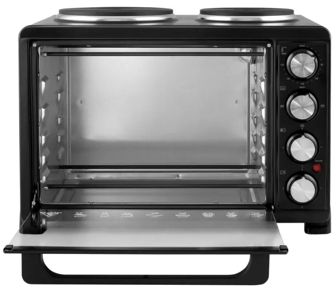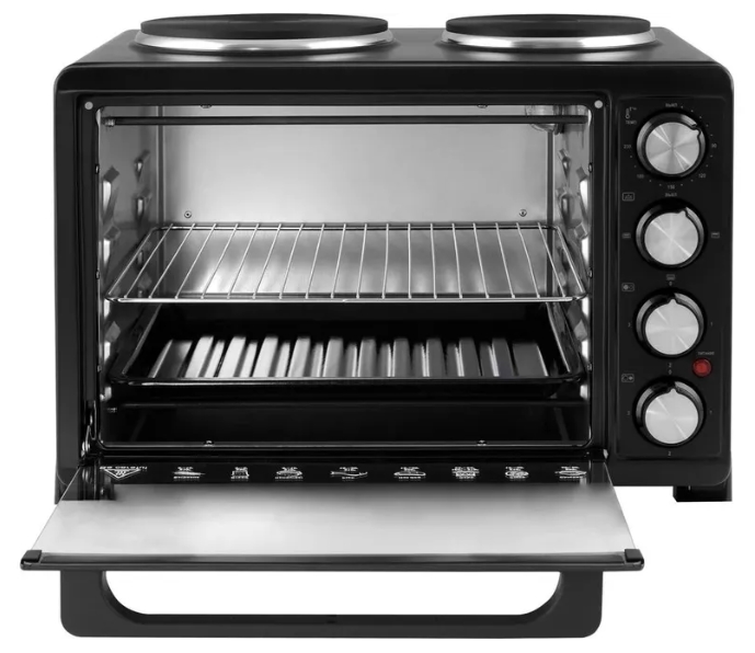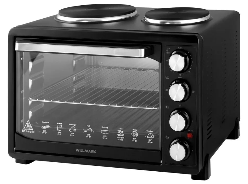 Мини-печь WHO-402B идеально подойдет для эксплуатации в малогабаритных помещениях и станет незаменимой помощницей на вашей кухне. С помощью поворотных переключателей вы можете легко регулировать степень нагрева духового шкафа и чугунных конфорок.Температура в камере регулируется от 90 до 230 °C. Мощность духового шкафа 1500 Вт, а конфорок – 750 и 1000 Вт. Объем в 30 литров позволит приготовить ужин даже на большую семью. В комплекте: решетка, противень, держатель.