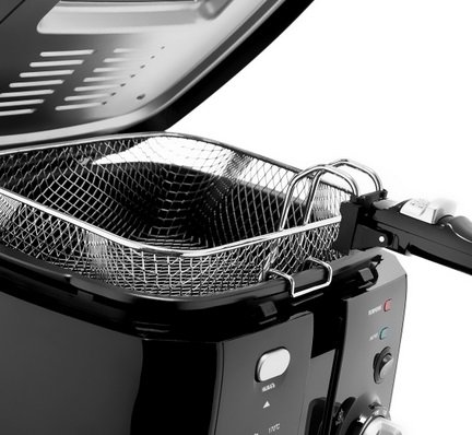 Особенности Антипригарное покрытие чаши; Регулировка температуры 130-190 °C; Большое смотровое окно; Корзина для фритюра со складной ручкой; Съёмная, моющаяся крышка; Блокировка ручки; Защита от перегрева.