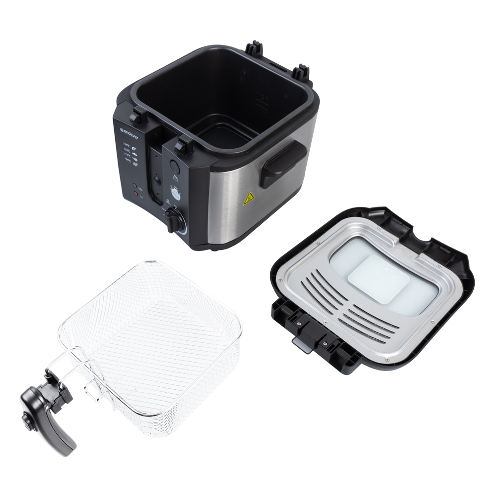 Фритюрница ENDEVER Skyline FR-115 укомплектована съемной корзиной с термоизолированной складной ручкой, чтобы удобно и легко вынимать корзину с готовым блюдом. И корзину, и снимаемую крышку допустимо мыть в посудомоечной машине. Антипригарное покрытие чаши предохраняет продукты от подгорания и позволяет маслу дольше сохранять качество.
