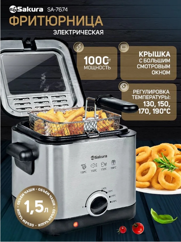 Если вы ищете надежную и качественную фритюрницу, которая поможет вам готовить разнообразные блюда, то Sakura SA-7674— отличный выбор из гаджетов бытовой техники для вашего дома и кухни, а также отличный подарок.