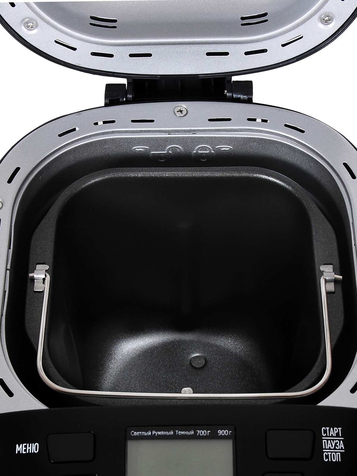 Хлебопечка Hyundai HYBM-P0513 – стильный и универсальный бытовой прибор, который прост в управлении и обладает большим набором функций. С его помощью можно быстро приготовить выпечку, общий вес которой не превышает 900 грамм. Кухонное оборудование подходит для домашнего и офисного использования. Максимальная мощность хлебопечки составляет 550 Ватт. Всего у бытового прибора предусмотрено 15 программ для приготовления пищи, есть возможность установки таймера. Сама хлебопечка сделана из металла, имеет антипригарное покрытие, поэтому долго чистить внутреннюю чашу не придется. Кухонное оборудование позволяет приготавливать кексы, шарлотку, булочки, пончики, варенье и многое другое.
