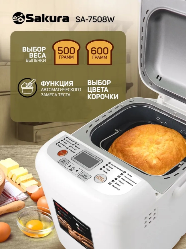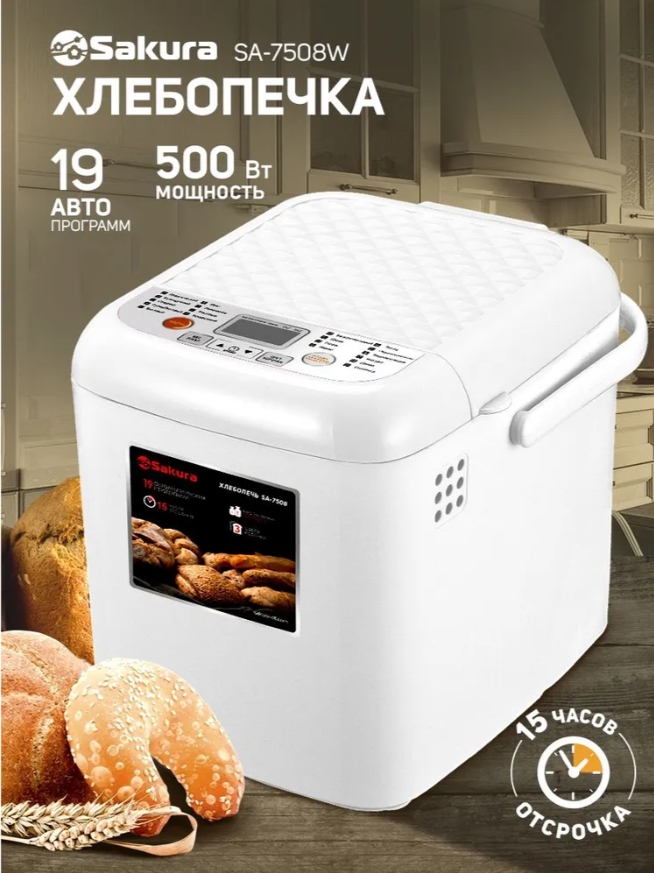 / / Sakura Хлебопечь Sakura SA-7508W 500Вт 19прогр 500
