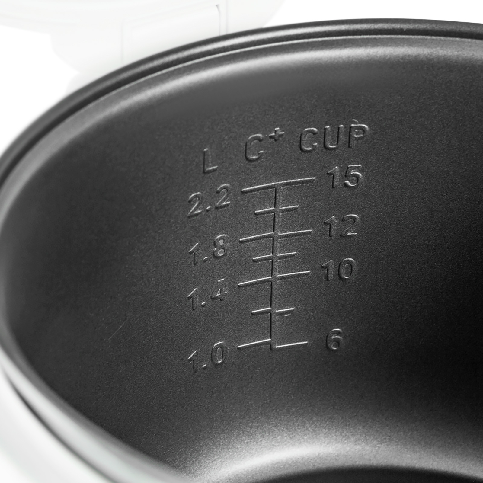 Вместительная чаша объемом 5 литров с антипригарным покрытием оптимальна для приготовления блюд для всей семьи.
