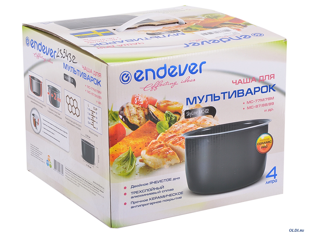 Чаша для мультиварок Endever Skyline MC-02, внутреннее покрытие: керамика, толщина стенок: 2 мм, двойное ячеистое дно, мерная шкала, емкость: 4л