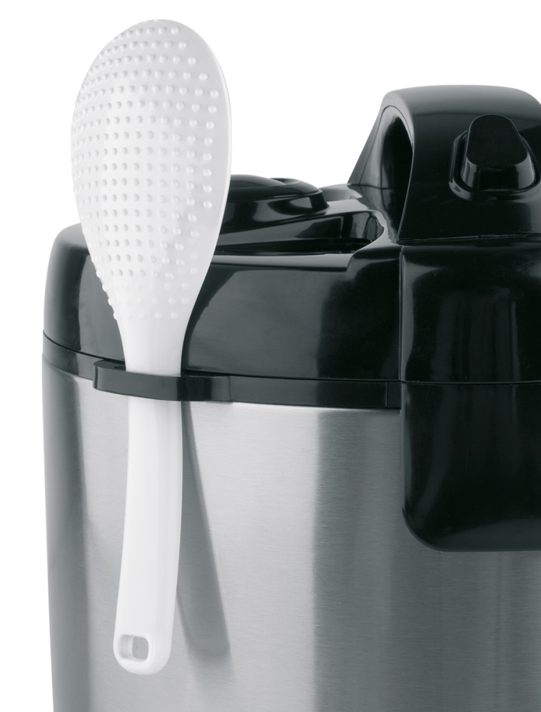 Ложка для перемешивания, мерный стакан, емкость для приготовления на пару и книга рецептов в комплекте.