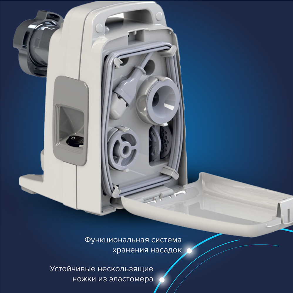 Удобное хранение шнура питания и решеток в отсеке с откидной крышкой