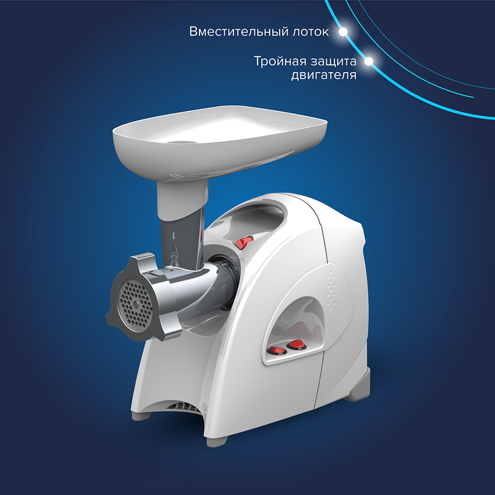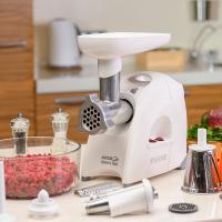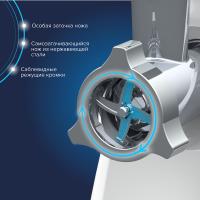 • Особая заточка ножа и решетки увеличенной толщины из нержавеющей стали, обеспечивающие высокое качество фарша из всех видов мяса и других продуктов