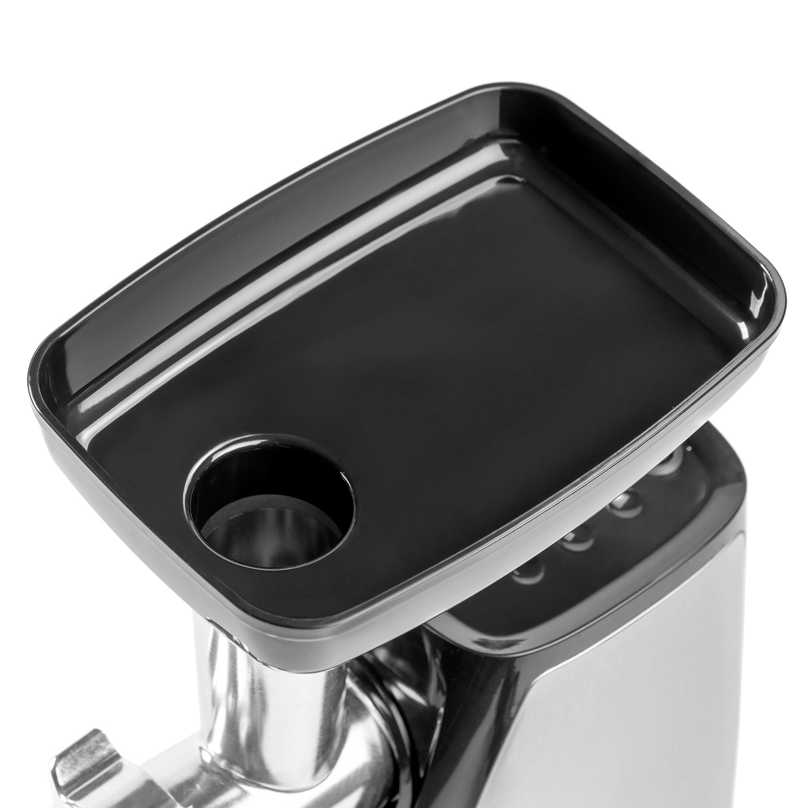 Стоит отметить также, увеличенный диаметр горловины, благодаря которому можно загружать в мясорубку более крупные куски мяса.