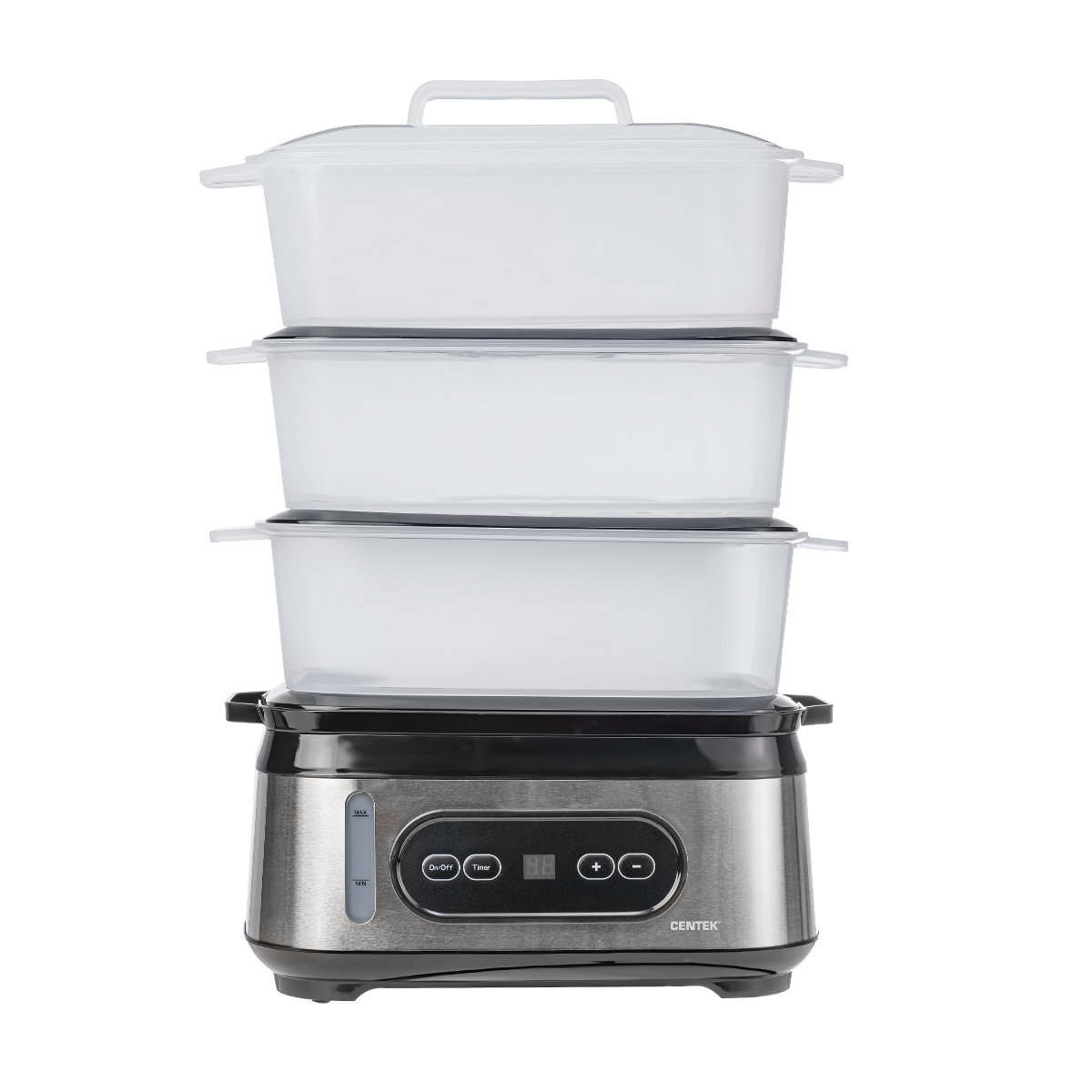 Пароварка Centek для приготовления вкусной и здоровой пищи. Пароварка снабжена надежной системой защиты прибора, исключающей возможность опасных ситуаций, связанных с недостаточным количеством воды.