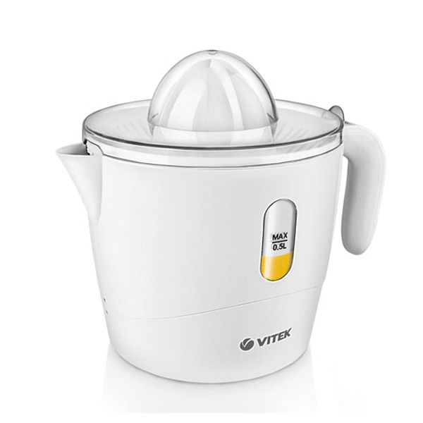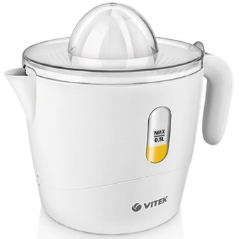 Компактная и удобная соковыжималка VT-1638 W для цитрусовых понравится вам своим непревзойденным качеством и надежностью! При небольшой мощности она способна быстро выжать весь сок из лимонов и апельсинов, грейпфрутов и мандаринов. С данной соковыжималкой освежающие цитрусовые соки станут одним из любимых дополнений к завтраку, обеду или ужину в вашей семье! Два скоростных режима, индикатор уровня сока, две сменные насадки – все это составляет комфортную работу при использовании техники. Не тратьте времени на выжимание сока из апельсинов вручную, купите надежную соковыжималку VT-1638 W и сделайте процесс получения сока настоящим удовольствием.