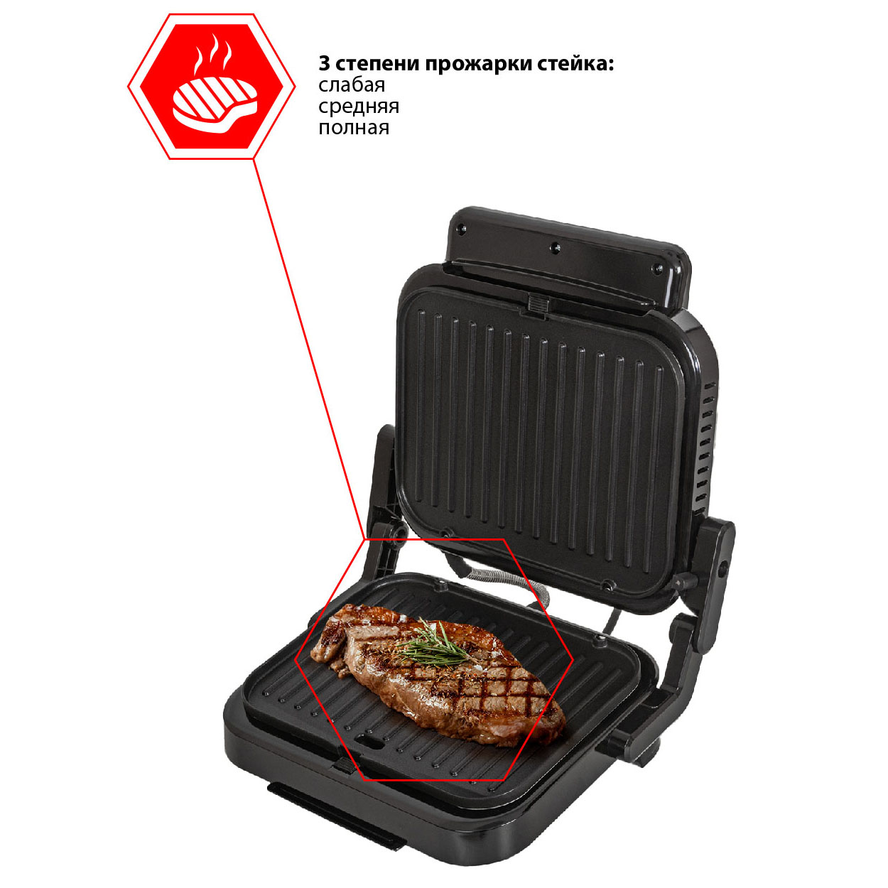 Полная комплектация электрогриль, съемные панели (2 шт.), съемный поддон для сбора жира, гарантийный талон, инструкция на русском языке