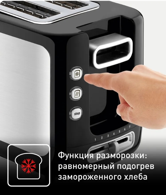 • Функция остановки. Специальная функция для немедленной остановки работы тостера во время приготовления