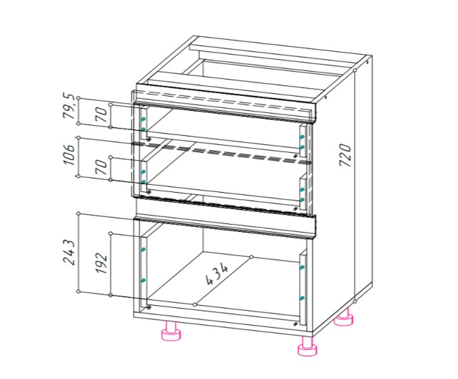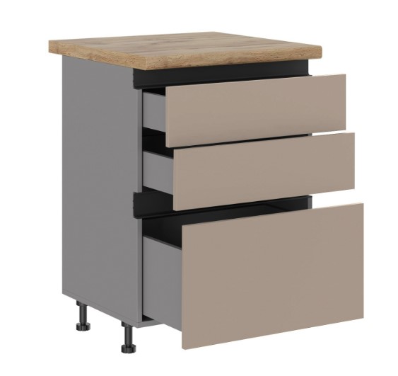 SkyFREE С3ЯК-550 шкаф нижний (3 ящика: 3 фасада) Серый шифер / Матовый латте софт