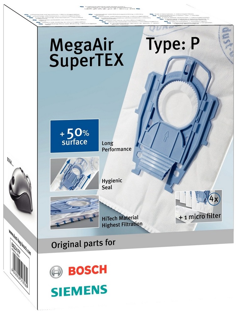 Дополнительная информация 4 мешка-пылесборника MegaAir SuperTEX типа Р