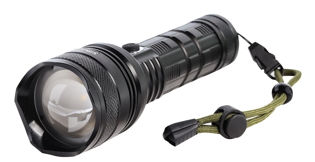 Ручной фонарик в корпусе из анодированного алюминия с  режимами работы: турбо 3800 Лм - 2 ч, средний 1600 Лм - 3,5 ч, минимальный - 600 Лм - 5 ч, стробоскоп  600 Лм - 10 ч, сигнальный  600 Лм - 12 ч    и раъемом Micro-USB для зарядки.