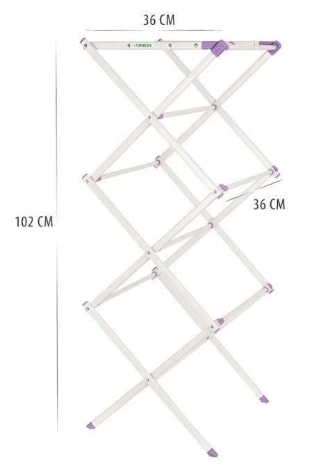 В разобранном состоянии высота сушилки для белья ORION составляет 102 см. Длина регулируется от 43 до 73 см. Ширина 36 см.