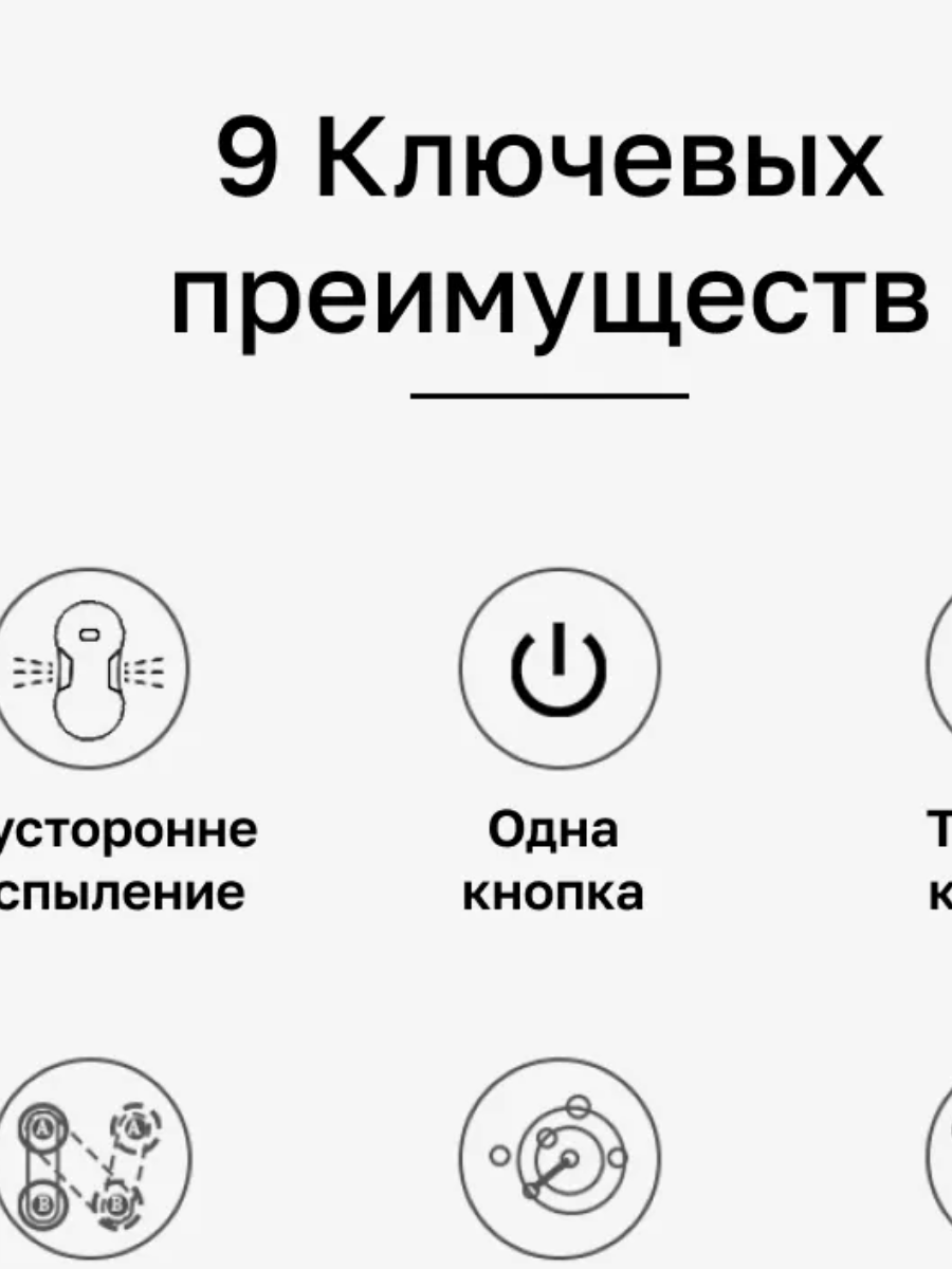 • Качественные салфетки из микрофибры Искуственный интеллект построения маршрута Попеременное увеличение и уменьшение всасывающей силы сменяется протиркой Высококачественные салфетки
