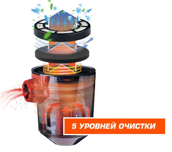 • Технология "Мультициклон" с системой 5-ступенчатой фильтрации