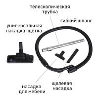 Полная комплектация пылесос, телескопическая трубка, гибкий шланг, щетка пол/ковер, щелевая насадка, насадка для мебели, гарантийный талон, инструкция на русском языке