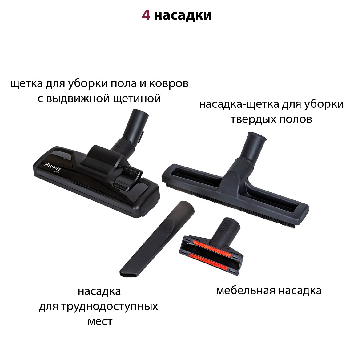 Пылесос Pioneer VC345C с мотором повышенной эффективности и увеличенным радиусом действия отлично подойдет для эффективной и быстрой уборки любых помещений. 3-ступенчатая система фильтрации гарантирует очистку даже от мельчайших частиц пыли. Пылесос оснащен металлической телескопической трубкой и широким набором насадок: универсальная щетка «ковер/пол», щетка для твердых полов, щелевая насадка и насадка для мебели. На корпусе расположен поворотный регулятор мощности всасывания. Длины кабеля (6 метров) достаточно для свободной уборки помещения до 9 метров. Уход за пылесосом предельно прост: моющиеся фильтры промываются холодной водой, а мусор из контейнера объемом 2 литра вытряхивается в мусорное ведро. Для компактного хранения предусмотрена вертикальная парковка пылесоса.