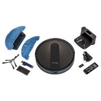 Комплектация: робот-пылесос, пульт ДУ, док-станция, дополнительные сменные боковые щетки, дополнительный моющийся HEPA фильтр, дополнительная тряпка из микрофибры, скребок для эффективной очистки щеток, гарантийный талон, инструкция на русском языке