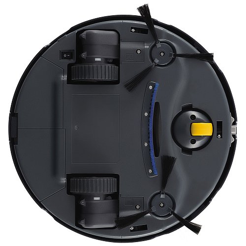В нижнюю часть робота-пылесоса встроен вращающийся щетинистый валик. Он эффективно поднимает с пола пыль и мусор, что гораздо эффективнее простого всасывания. Боковые вращающиеся щеточки сделаны для качественной очистки вдоль стен и в углах, а также они увеличивают площадь очистки за один проход. Их действие заключается в том, чтобы вращением подгонять пыль к воздухозаборной щели с щеткой.