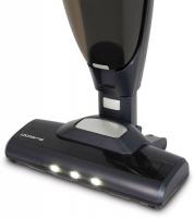 Незначительная мощность в 16 Вт пылесоса-электровеника POLARIS PVCS 1025 не сказывается на качестве сухой уборки. Он наделен пылесборником на 0,5 литра, фильтром тонкой очистки, индикатором заполнения пылесборника, складной трубкой для всасывания, подсветкой на щетке, индикатором заряда аккумулятора. Прибор паркуется на зарядной станции. Плюс ко всему, здесь установлен аккумулятор на 2200 мАч, заряжающийся 270-300 минут, при этом уборка рассчитана на 50 минут. Цвет корпуса серый, вес — 3.36 кг.